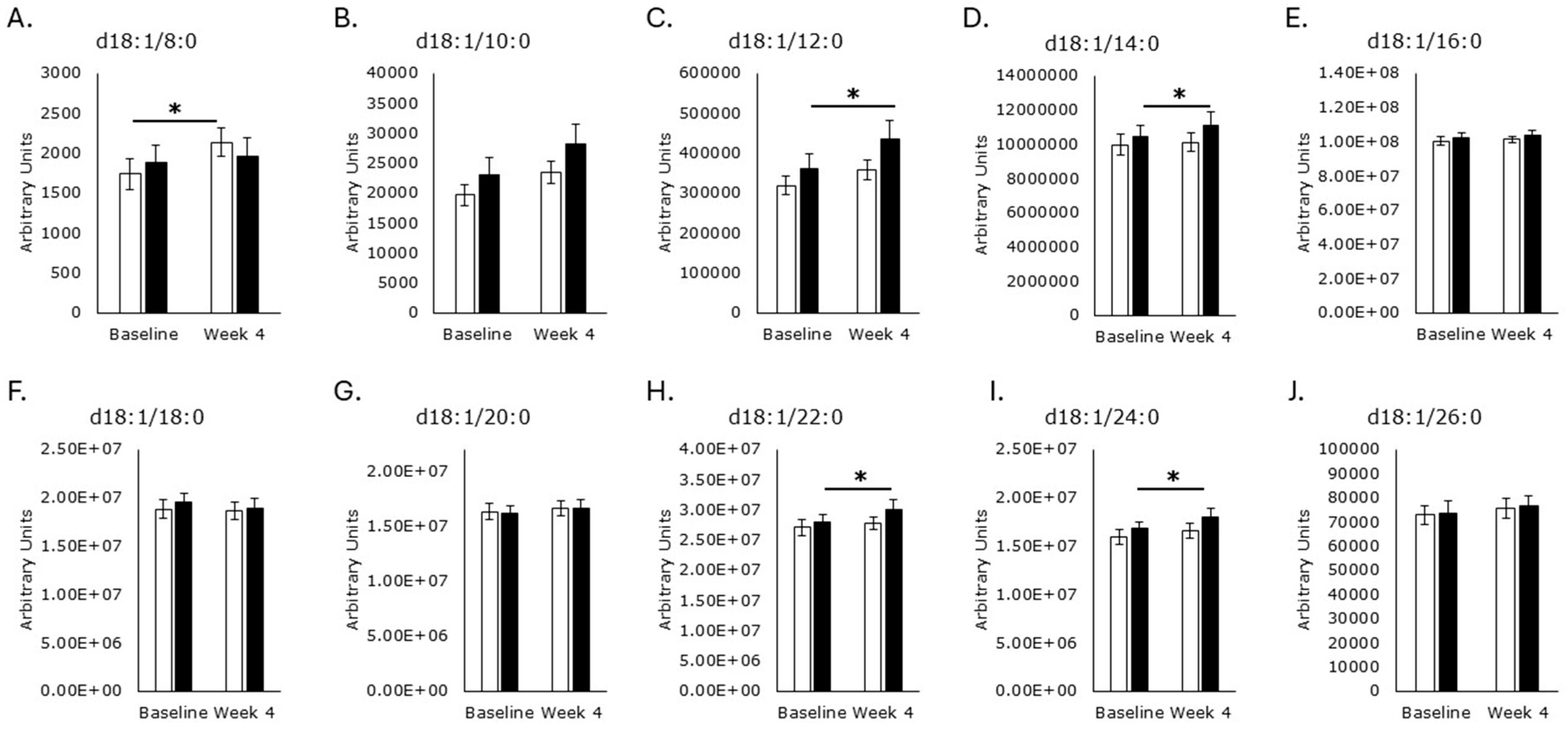- Staellberg-Stenhagen, S.; Svennerholm, L. Fatty acid composition of human brain sphingomyelins: Normal variation with age and changes during myelin disorders. J Lipid Res 1965, 6, 146–155. [Google Scholar]