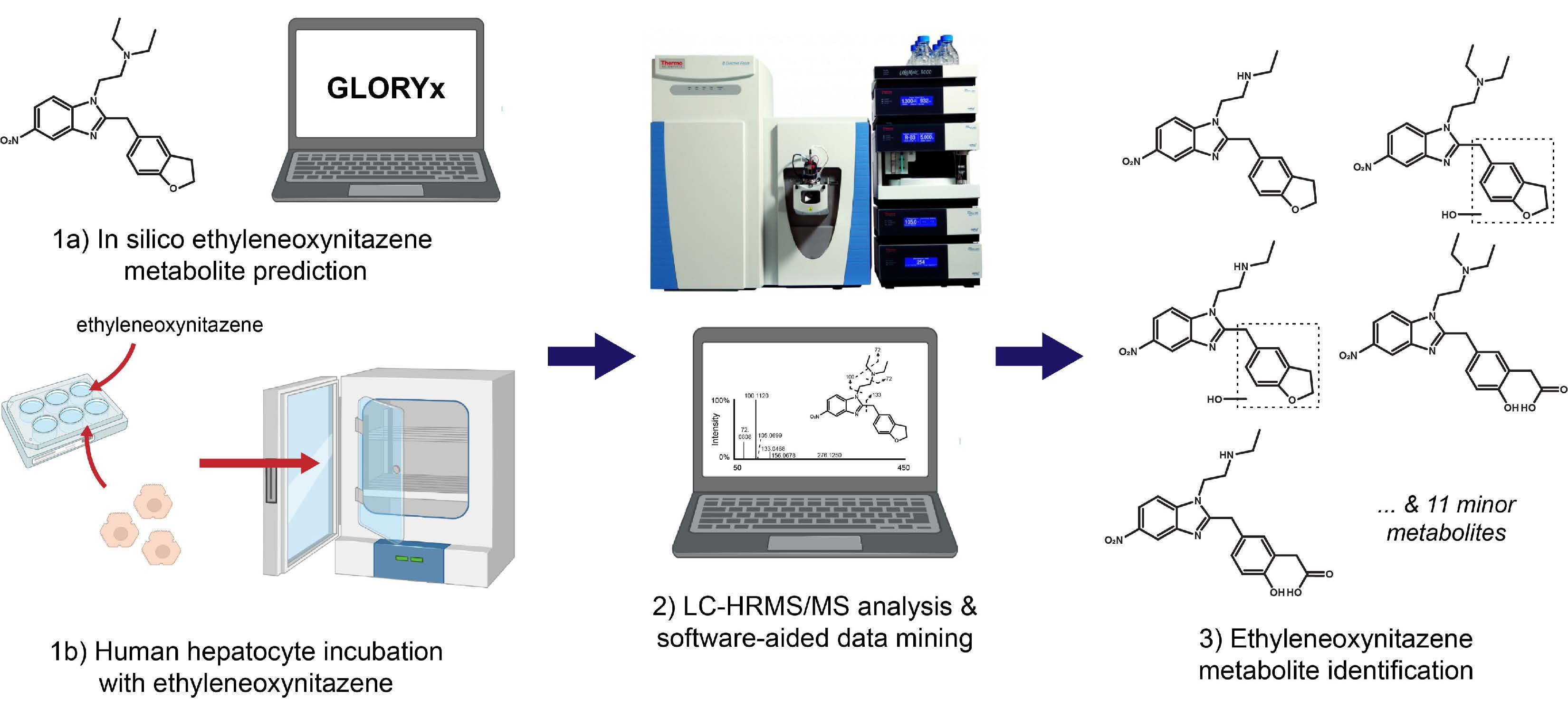 - Magny, R.; Schiestel, T.; M’Rad, A.; Lefrère, B.; Raphalen, J.-H.; Ledochowski, S.; Labat, L.; Mégarbane, B.; Houzé, P. Comparison of the metabolic profiles associated with protonitazene and protonitazepyne in two severe poisonings. Metabolites 2025, 15, 371. [Google Scholar] [CrossRef]
