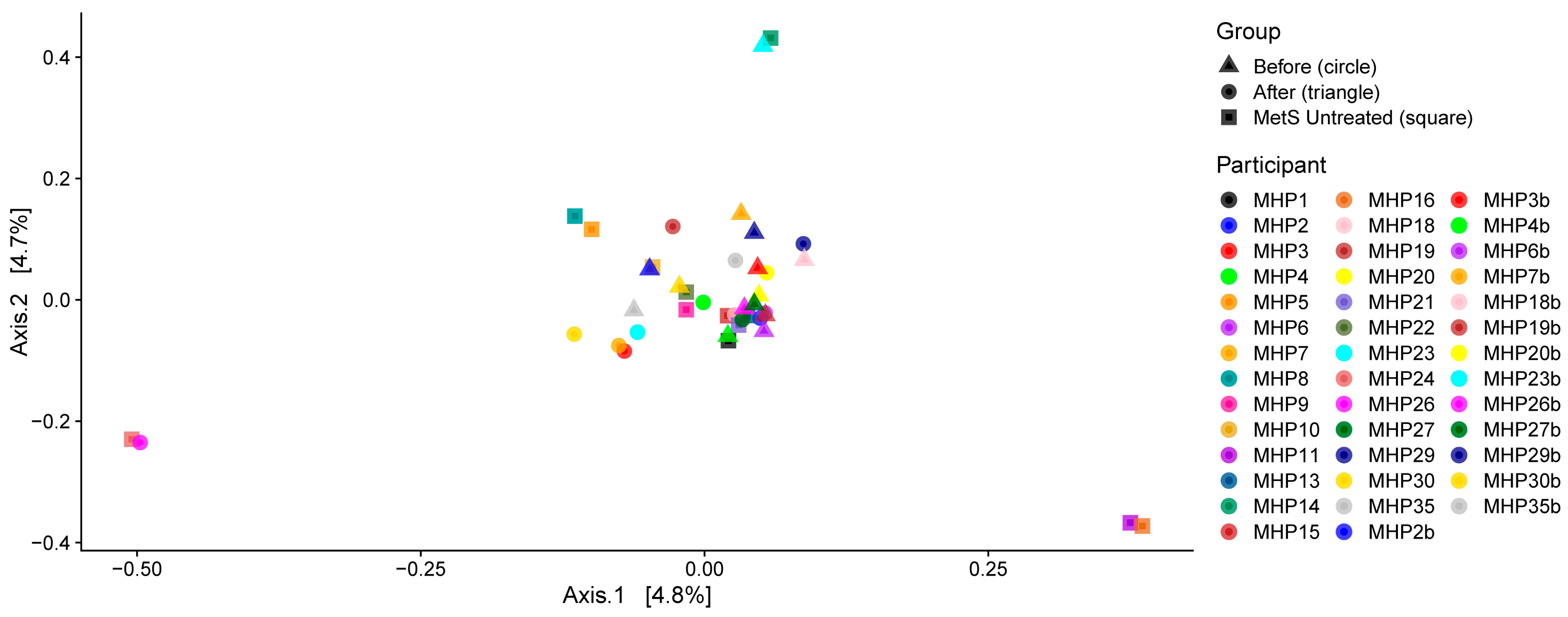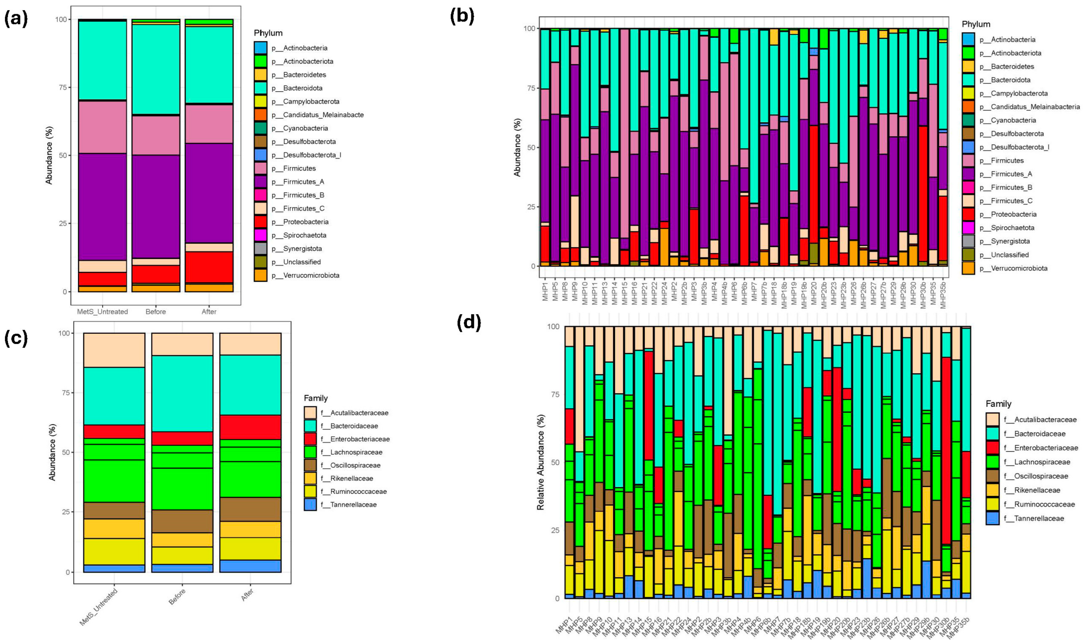3.2. Effect of the Metabolic Health Program on Gut Microbiota