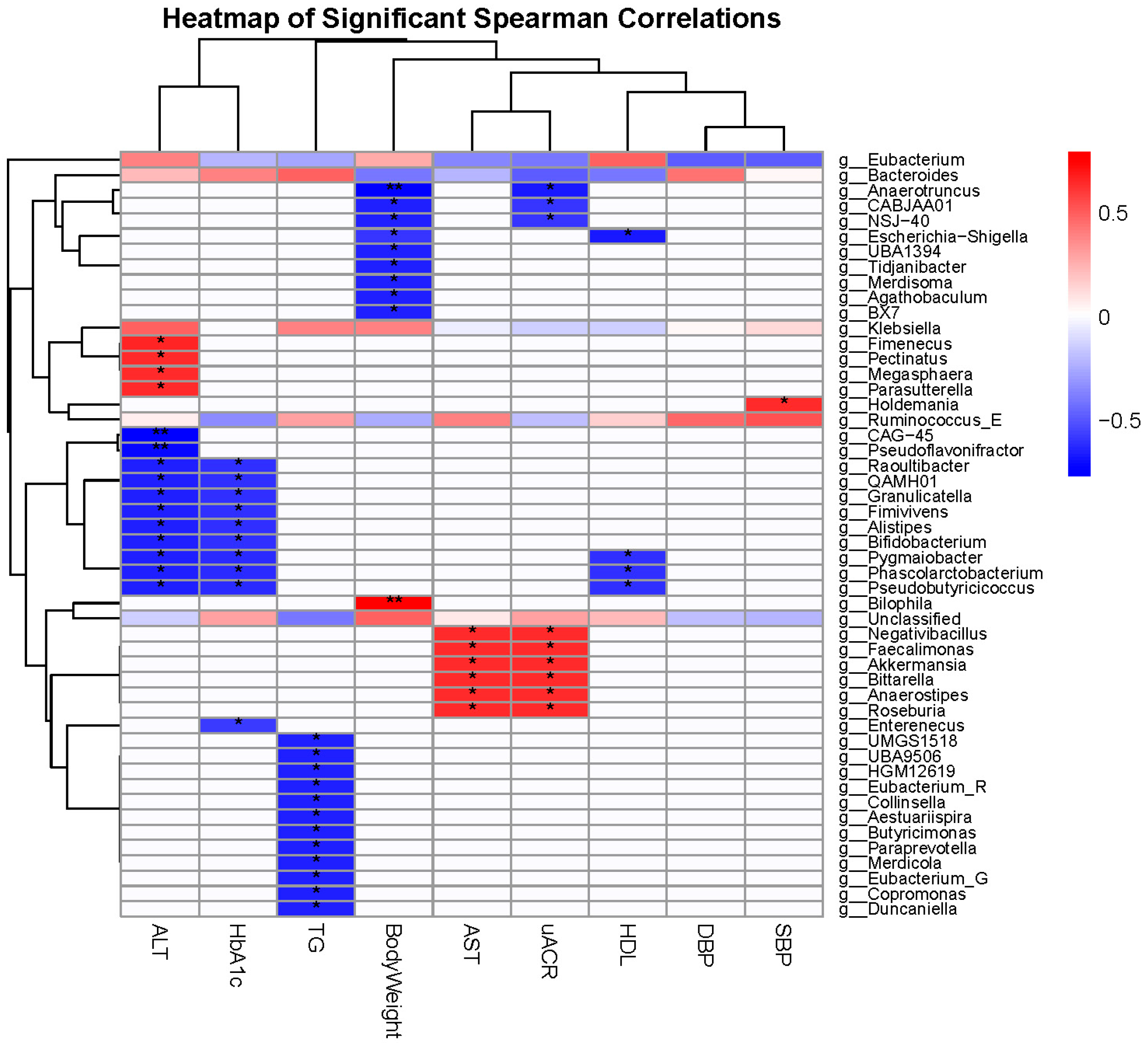 3.3. Correlation of Gut Microbiota with Clinical Parameters