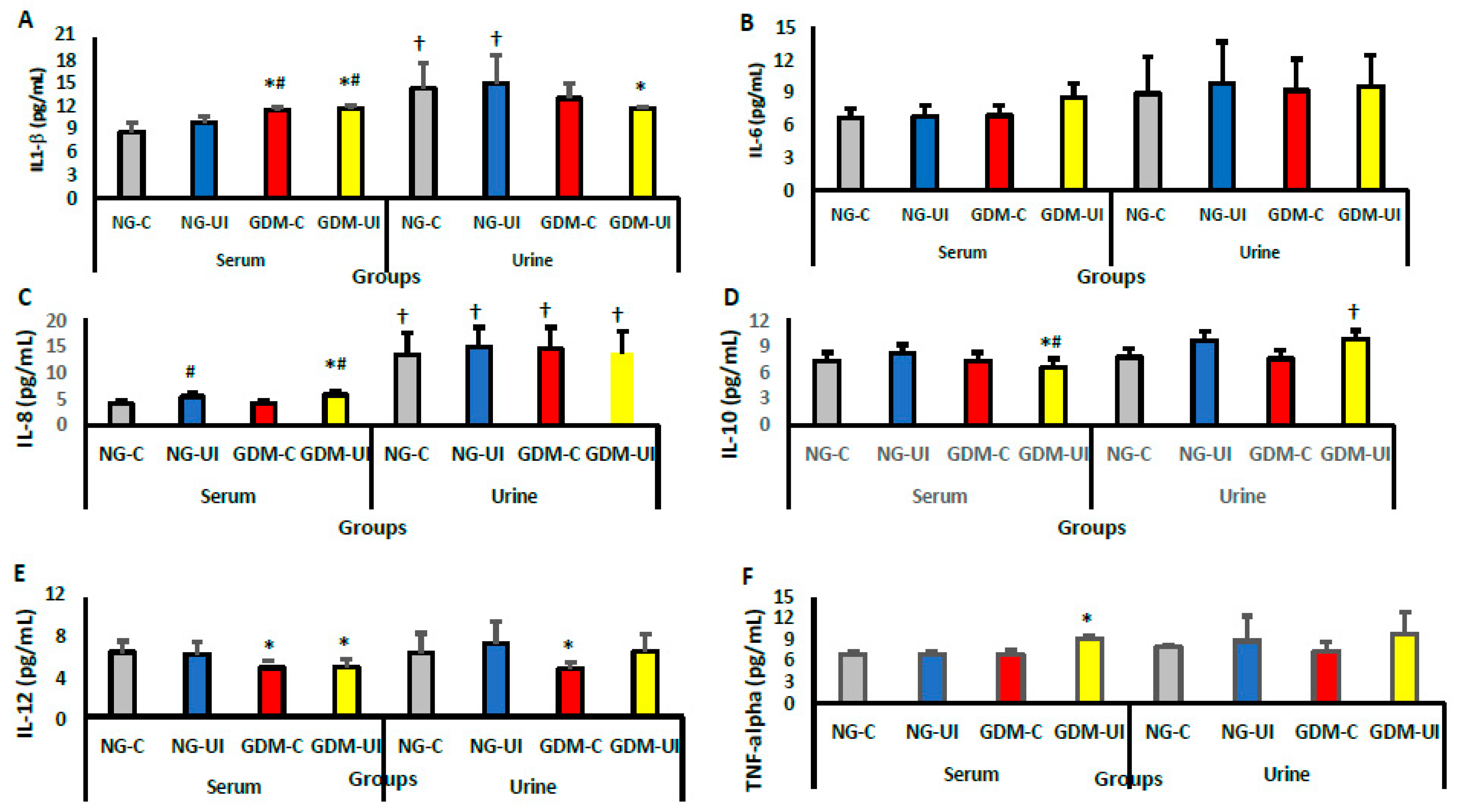 3.4. Serum and Urine Cytokine Levels
