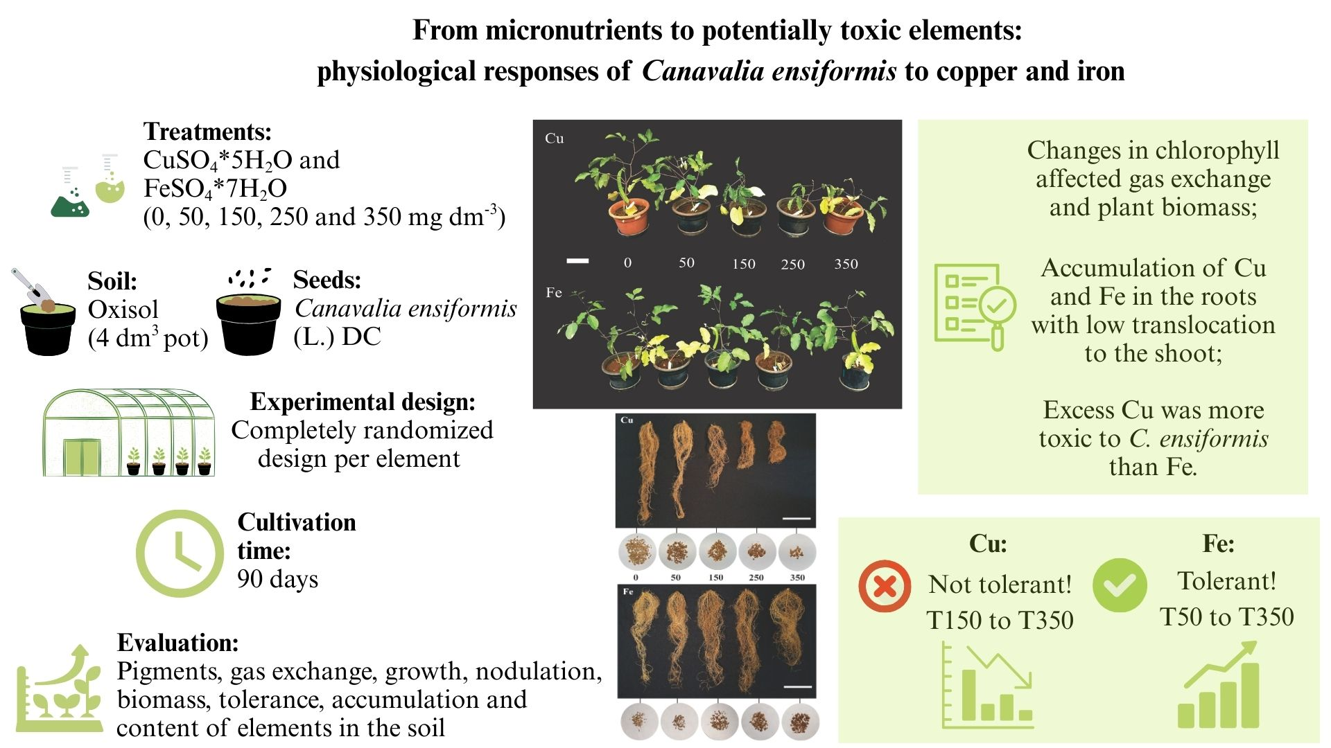 - Carvalho, I.F.d.; Alves, P.B.; Ferreira, T.C.; Santos, B.S.d.; Cozin, B.B.; Souza, R.P.d.; Camargos, L.S. Effects of iron and copper on emergence and physiology of Canavalia ensiformis (L.) DC. Rev. Caatinga 2025, 38, e12686. [Google Scholar] [CrossRef]