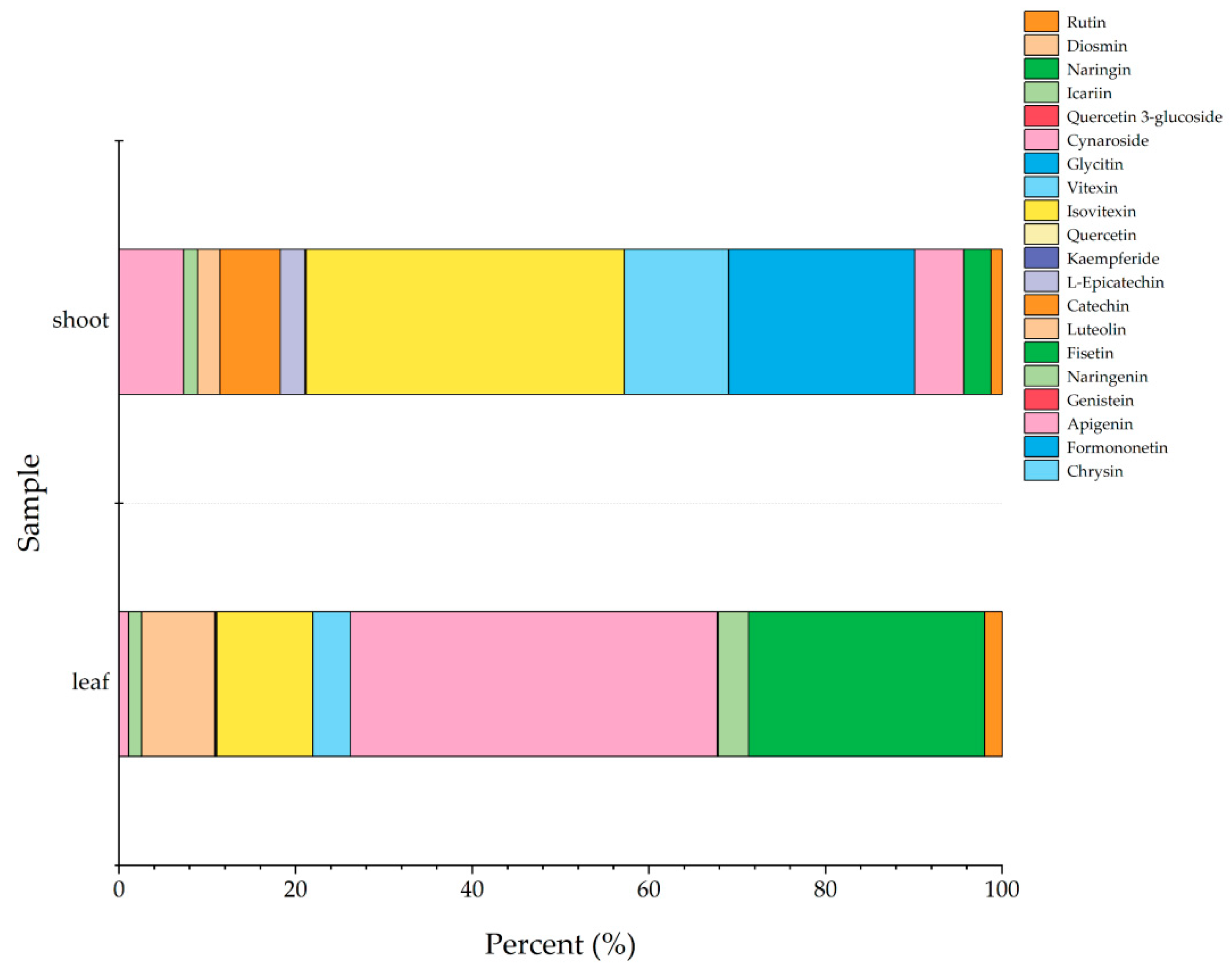 3.3.1. Identification and Analysis of Flavonoids in P. amarus Leaves and Shoots