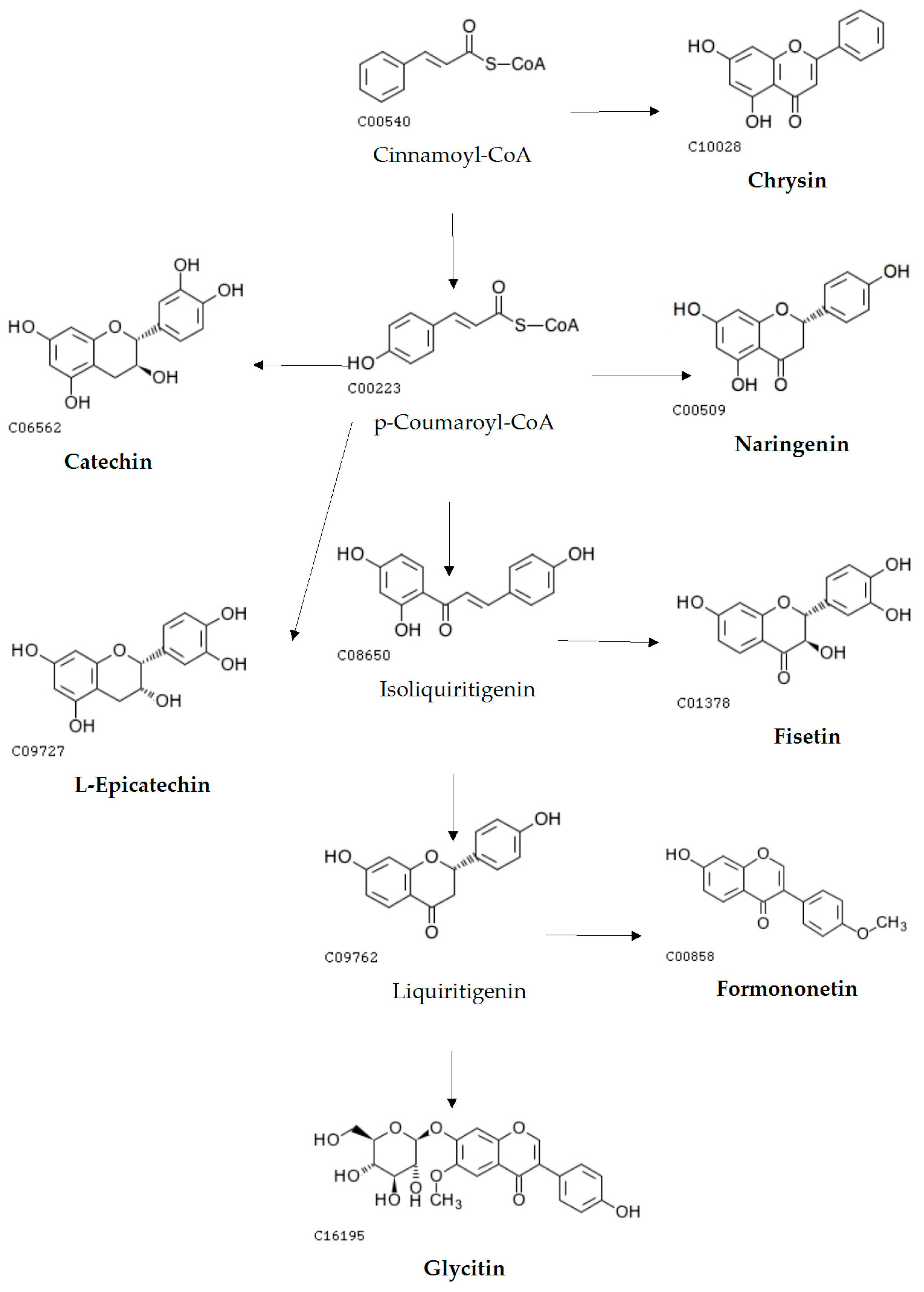 - Kang, Y.L.; Pei, J.; Cai, W.L.; Liu, W. Research progress on metabolic synthesis pathways and related functional genes of flavonoids in medicinal plants. Chin. Tradit. Herb. Drugs 2014, 45, 1336–1341. [Google Scholar]
