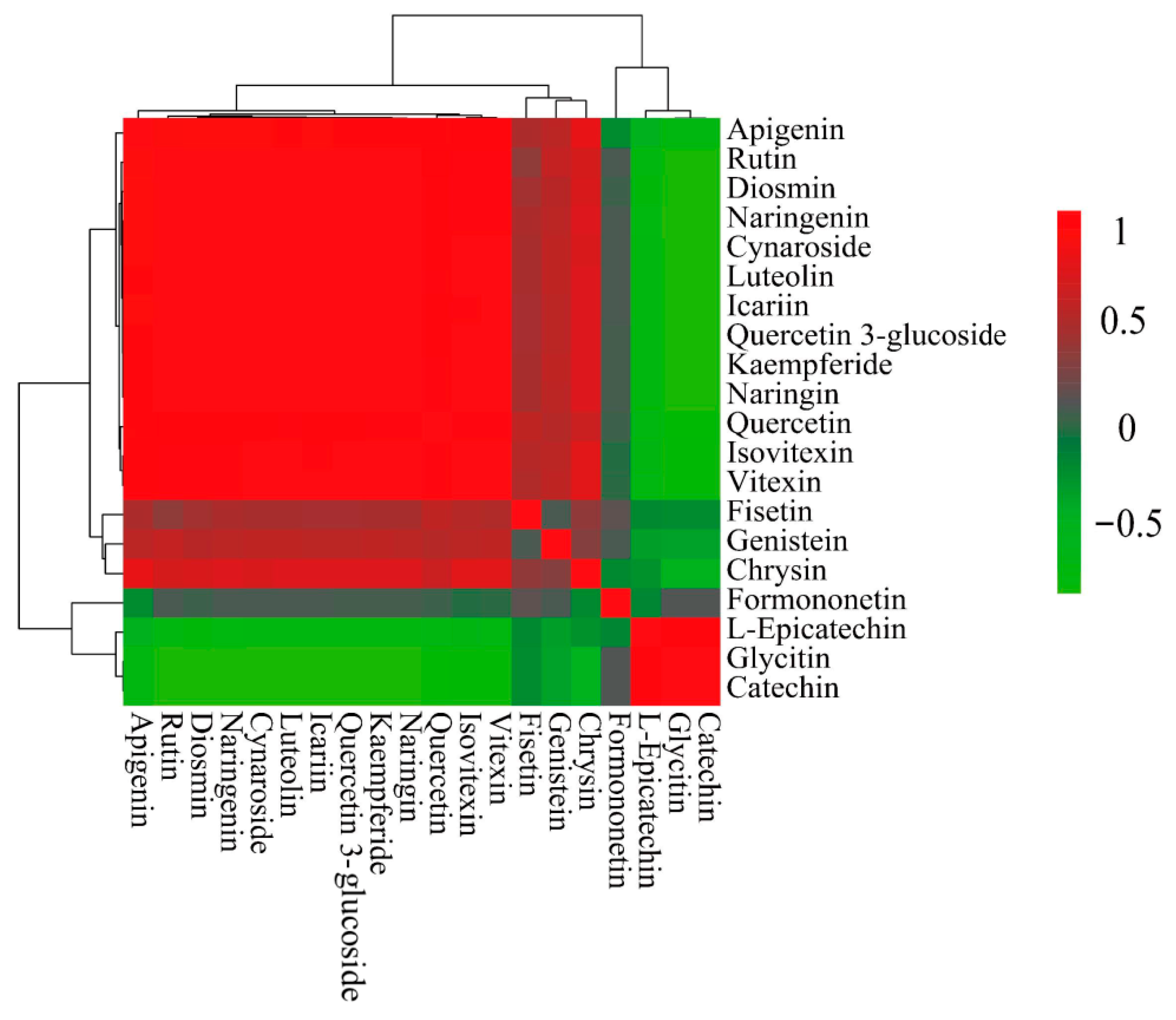 3.1. Determination of Flavonoids by Liquid Chromatography–Tandem Mass Spectrometry (LC-MS/MS)