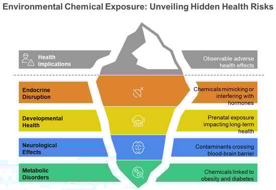 Schematic representation of major health implications associated with environmental chemical exposures.