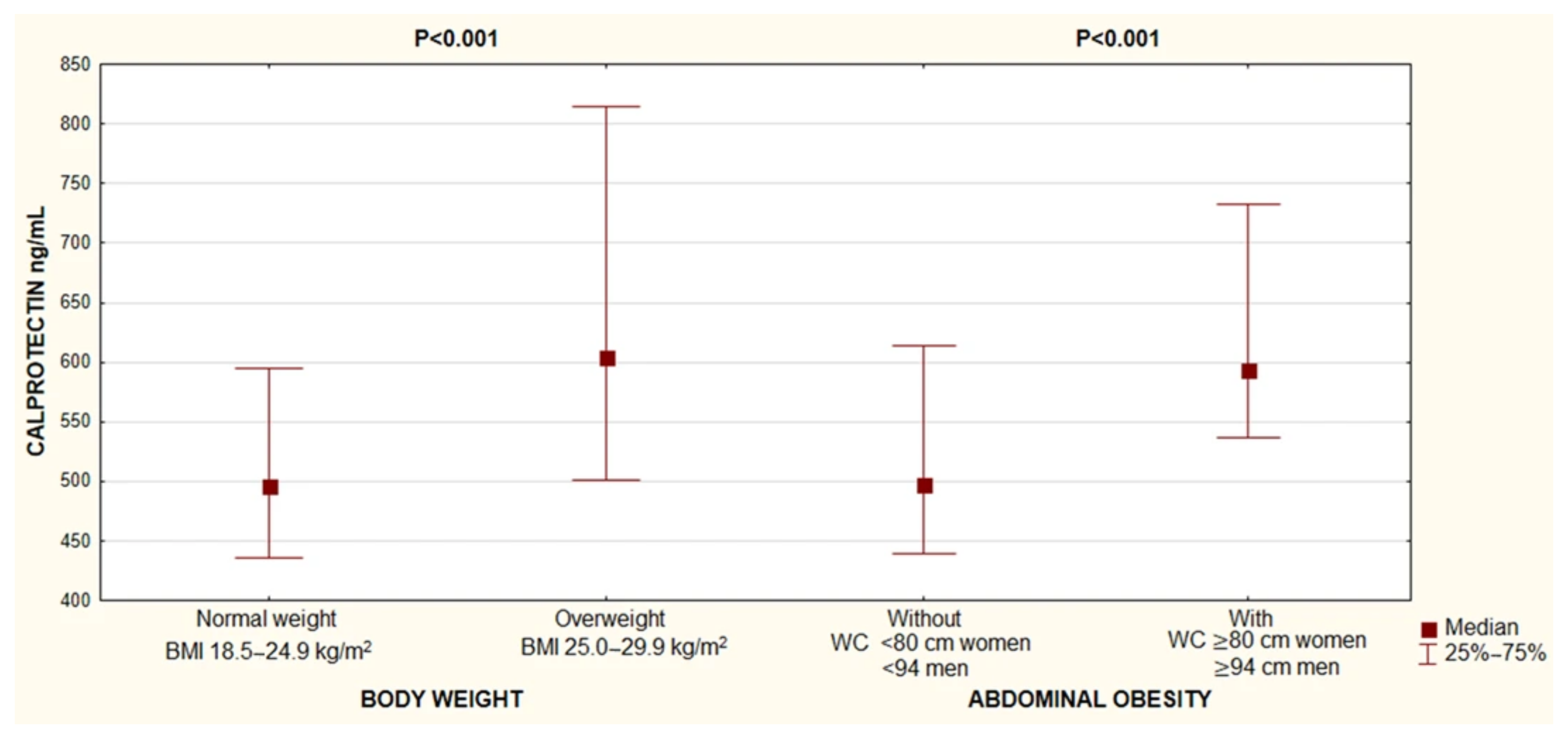 APA StyleBergmann, K., Stefańska, A., Kuligowska-Prusińska, M., & Krintus, M. (2025). Serum Calprotectin is Associated with Overweight and Laboratory Markers of Glucose Metabolism in Apparently Healthy Young Adults—A Cross-Sectional Descriptive Study. Metabolites, 15(12), 756. https://doi.org/10.3390/metabo15120756