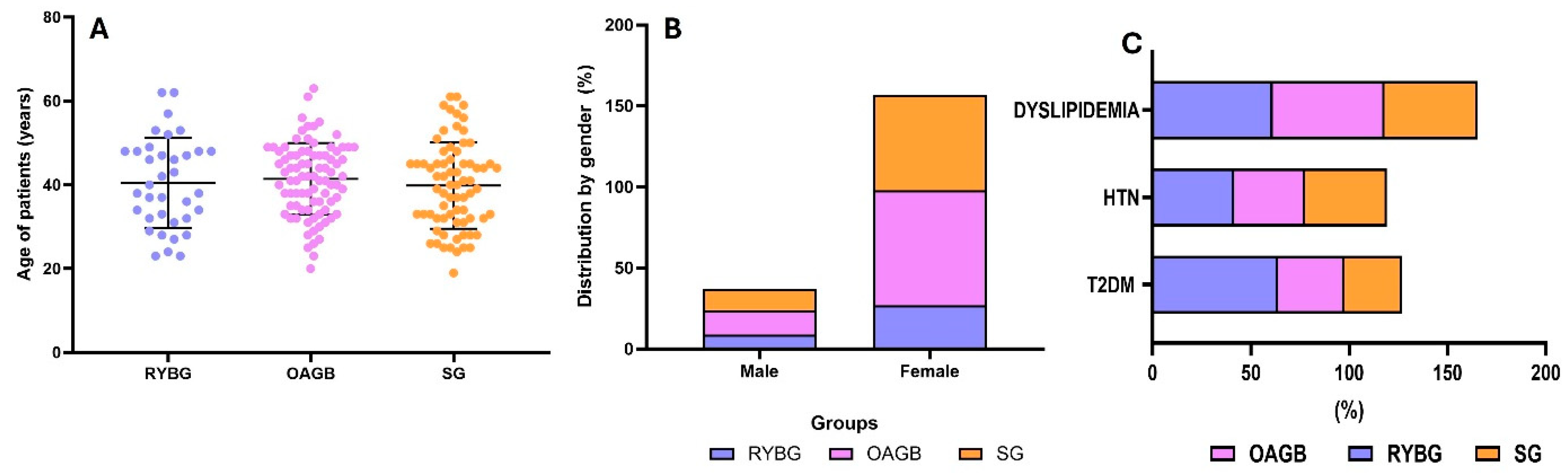 | TOTAL (n = 194) | RYBG (n = 36) | OAGB (n = 86) | SG (n = 72) | |