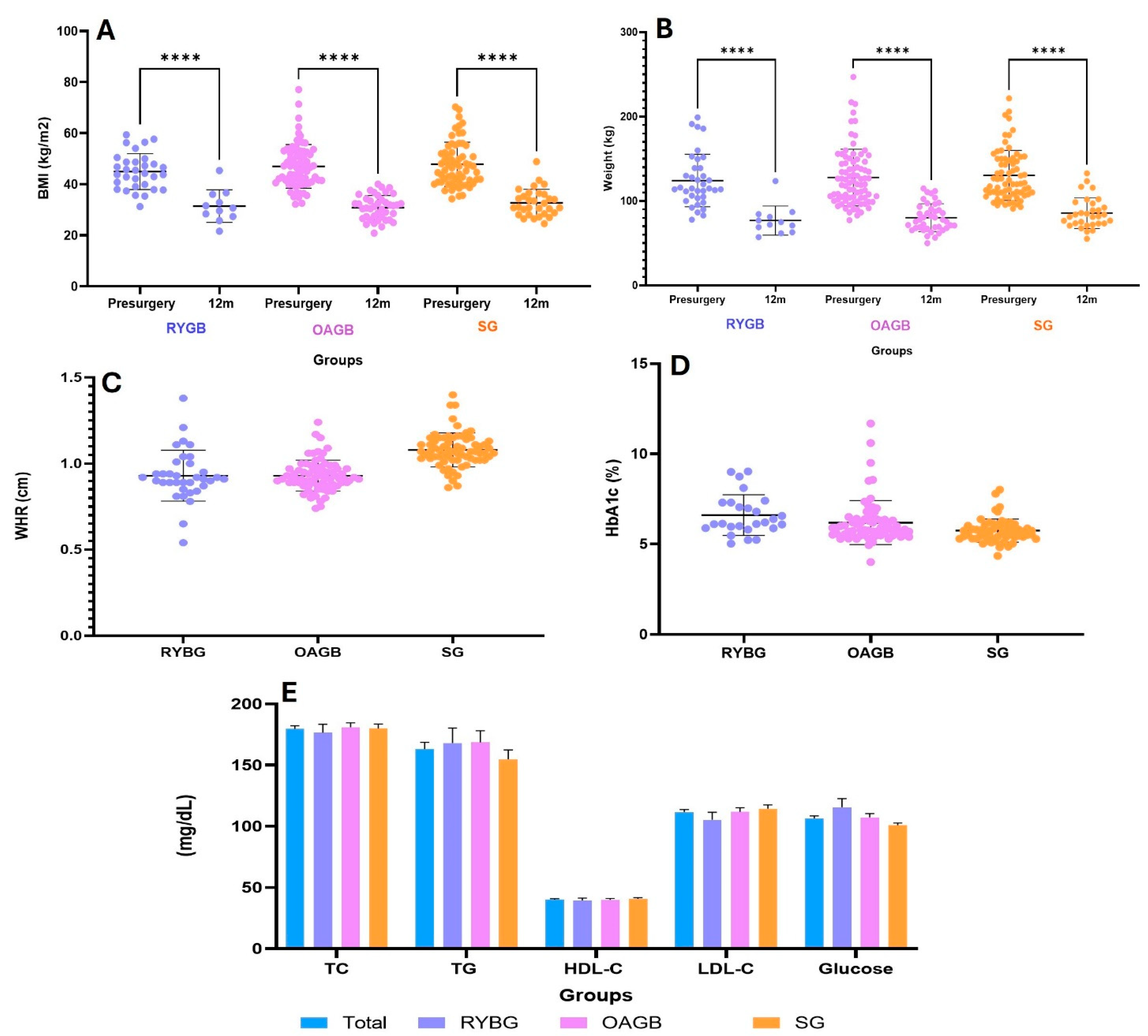 | TOTAL (n = 194) | RYBG (n = 36) | OAGB (n = 86) | SG (n = 72) | |||||