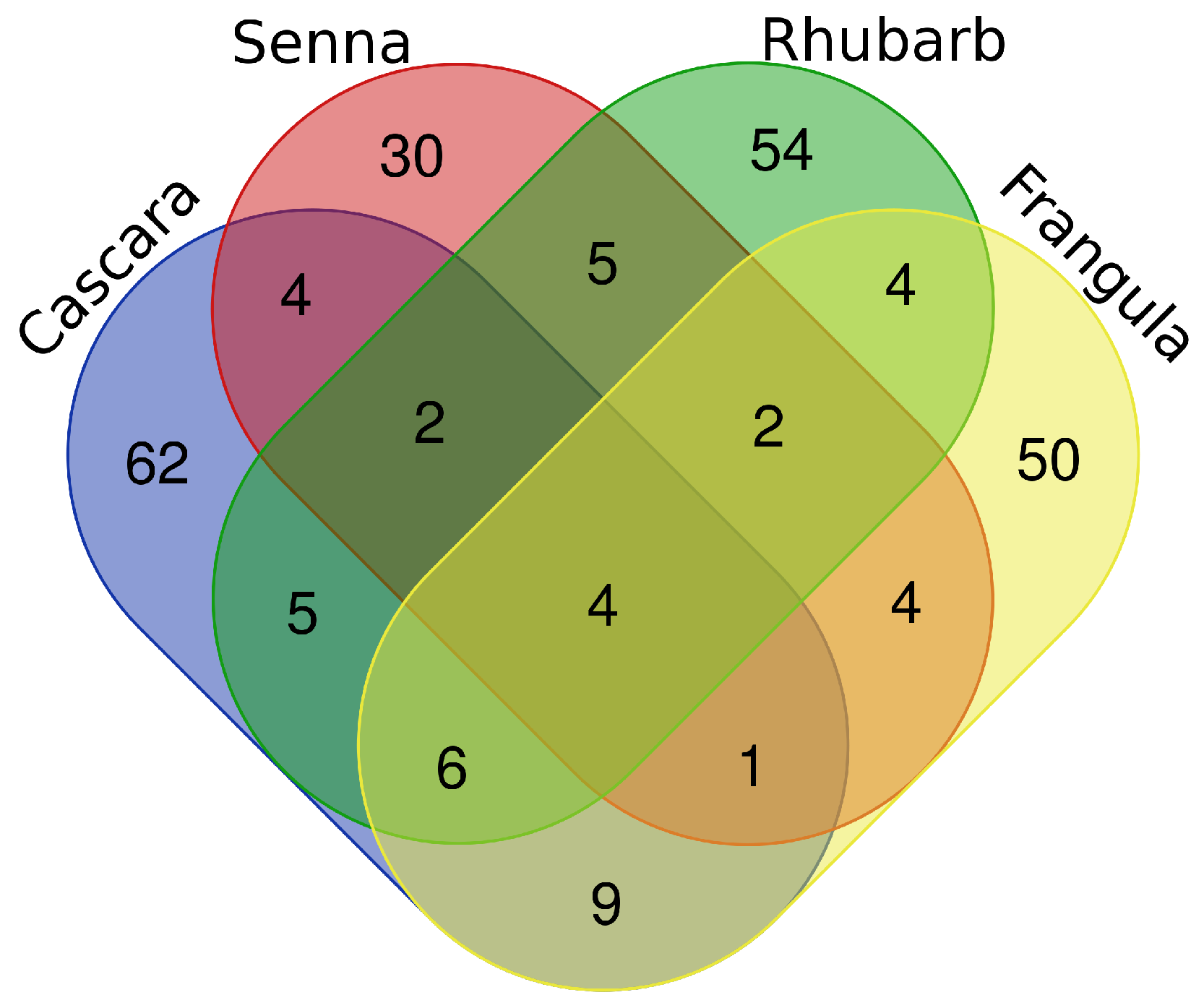 | Class | Cascara | Frangula | Rhubarb | Senna |