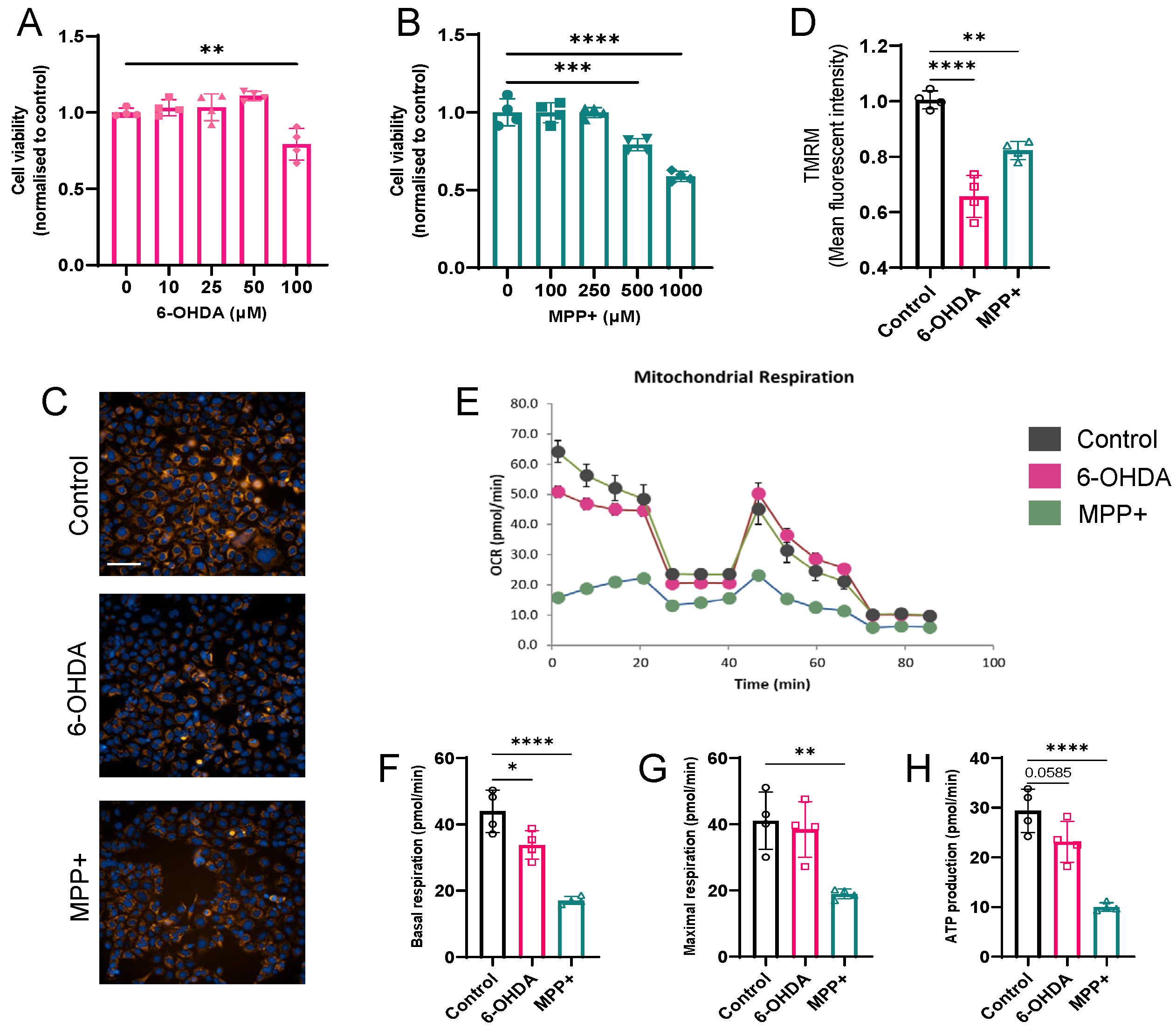 3.1. MPP+ Induces More Pronounced Mitochondrial Dysfunction than 6-OHDA