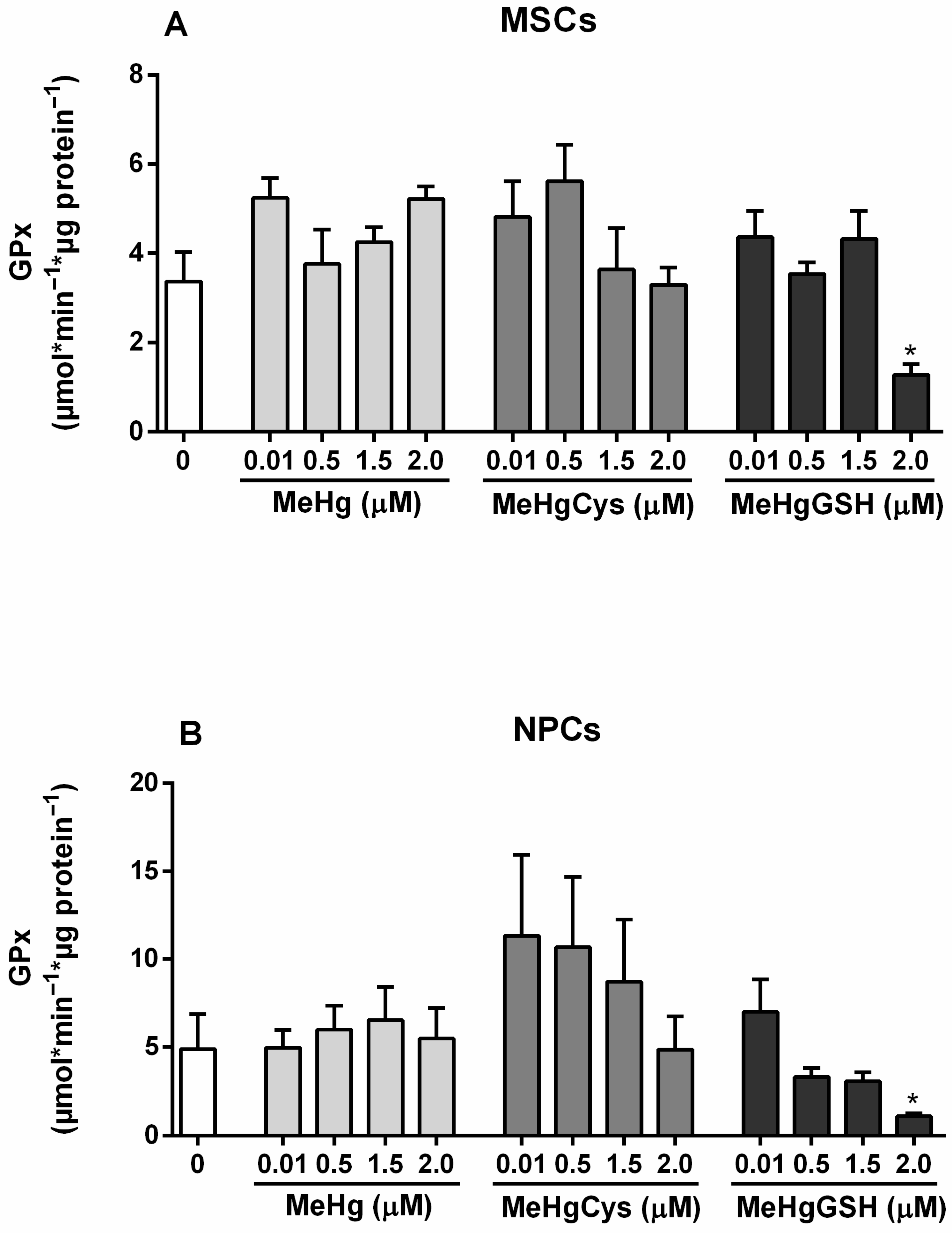 2.1.2. Exposure to the Physiologically Relevant Species of MeHg (MeHg–cysteine and MeHg–glutathione)