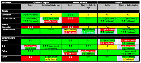 - Ichida, Y.; Hasegawa, G.; Fukui, M.; Obayashi, H.; Ohta, M.; Fujinami, A.; Ohta, K.; Nakano, K.; Yoshikawa, T.; Nakamura, N. Effect of atorvastatin on in vitro expression of resistin in adipocytes and monocytes/macrophages and effect of atorvastatin treatment on serum resistin levels in patients with type 2 diabetes. Pharmacology 2006, 76, 34–39. [Google Scholar] [CrossRef] [PubMed]