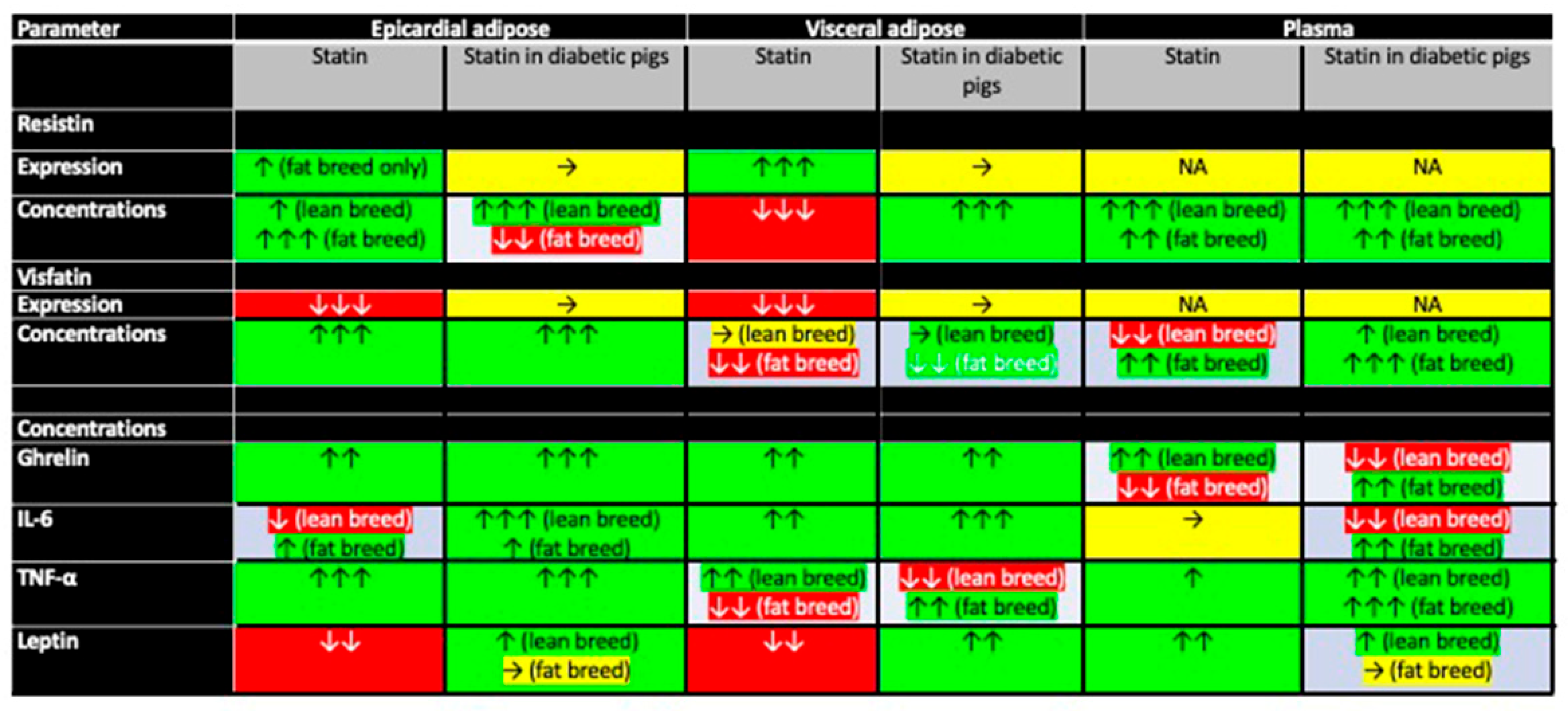 - Kadoglou, N.P.E.; Velidakis, N.; Khattab, E.; Kassimis, G.; Patsourakos, N. The interplay between statins and adipokines. Is this another explanation of statins ‘pleiotropic’ effects? Cytokine 2021, 148, 155698. [Google Scholar] [CrossRef] [PubMed]