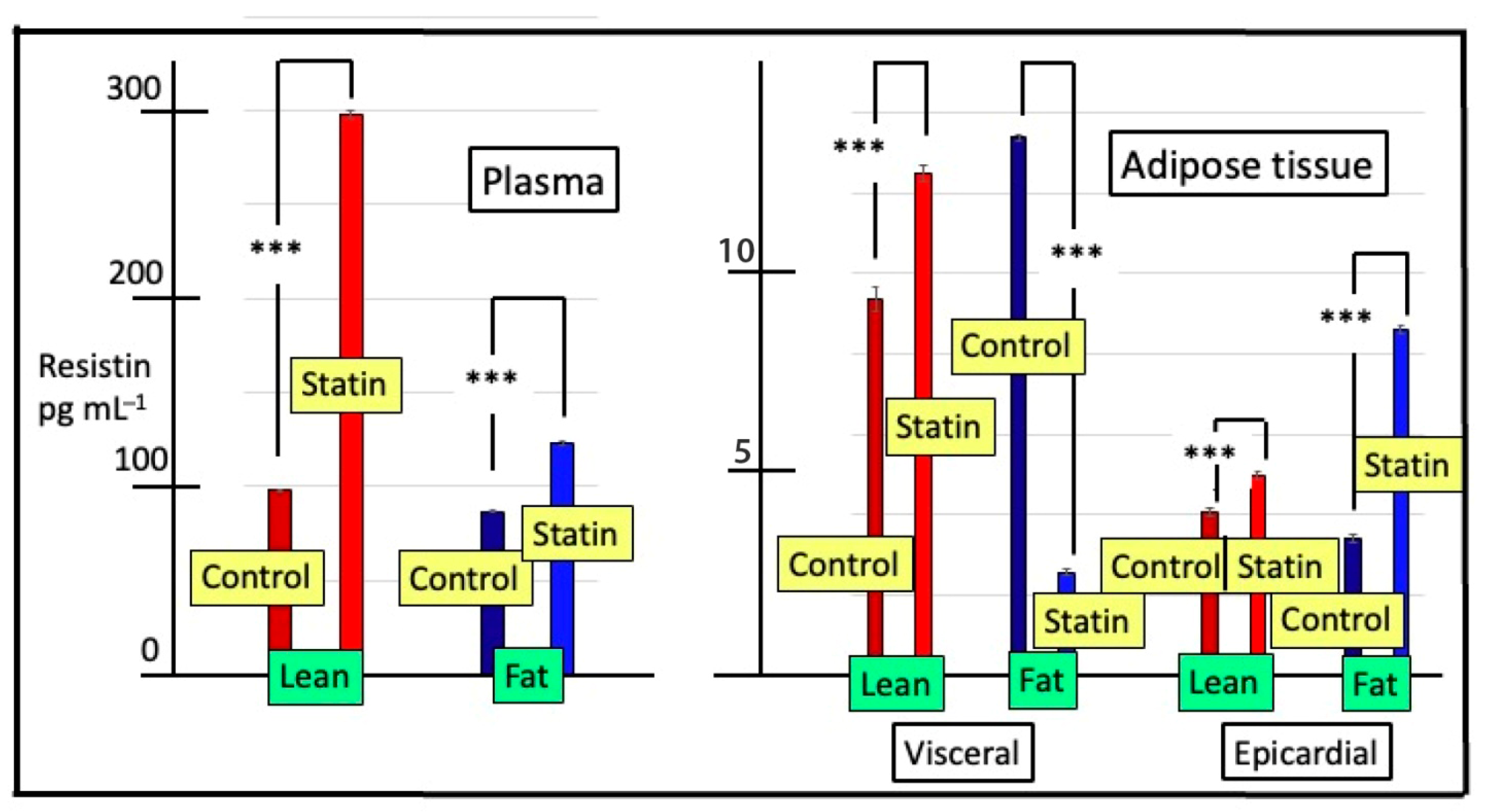 - Sahebkar, A.; Giorgini, P.; Ludovici, V.; Pedone, C.; Ferretti, G.; Bacchetti, T.; Grassi, D.; Di Giosia, P.; Ferri, C. Impact of statin therapy on plasma resistin and visfatin concentrations: A systematic review and meta-analysis of controlled clinical trials. Pharmacol. Res. 2016, 111, 827–837. [Google Scholar] [CrossRef] [PubMed]