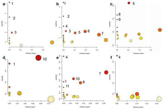 3.4. KEGG Pathway Analysis of Differential Metabolites