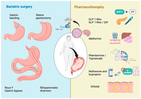 - Duah, J.; Seifer, D.B. Medical therapy to treat obesity and optimize fertility in women of reproductive age: A narrative review. Reprod. Biol. Endocrinol. 2025, 23, 1–14. [Google Scholar] [CrossRef]
