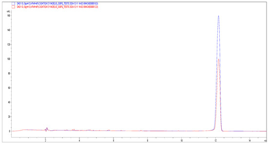The instrument used for the analyses was the Agilent 7100 Capillary Electrophoresis System (Santa Clara, CA, USA), equipped with a polyimide-coated fused silica capillary with an internal diameter of 50 μm, an external diameter of 363 μm, a total length of 48.5 cm and an effective length of 40 cm. Electrophoretic separation was performed using a BGE composed of 30 mM borate–phosphate buffer, pH 8.0. To condition a new capillary, the following sequence was used: 1 M sodium hydroxide for 10 min, 0.1 M sodium hydroxide for 10 min, water for 10 min and 30 mM borate–phosphate buffer at pH 8.0 for 15 min. Daily conditioning of the capillary was carried out with 30 mM borate–phosphate buffer at pH 8.0. Analyses were carried out at a temperature of 37 °C, applying a voltage of 25 kV to enable electrophoretic separation of the reaction products. The analysis time was 15 min, preceded by 5 min of buffer conditioning and followed by washing with acetonitrile to remove any residual enzyme, extract or inhibitor. Detection was performed at a wavelength of 230 nm, corresponding to the absorption maximum of thiocholine, and at 412 nm, specific for the absorption of the 2-nitro-5-thiobenzoic acid anion. The wash between the analyses was carried out with running water for 3 min, acetonitrile for 3 min, water for 3 min and finally buffer for 3 min with the flush mode.