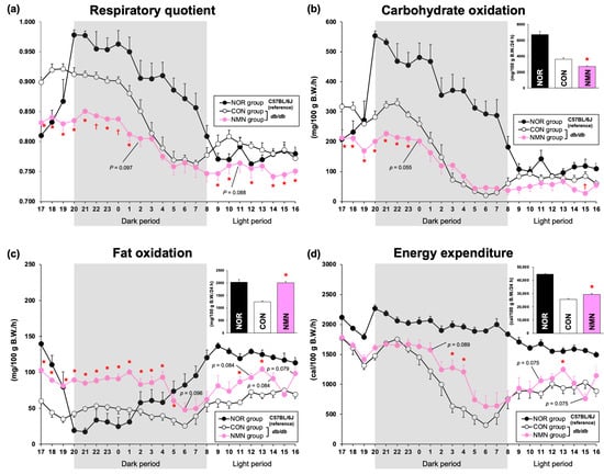 3.1. Effects of Dietary NMN Intake on Nutrients Oxidation in Obese Diabetic db/db Mice