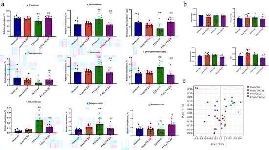 3.2. Exercise Modifies the PTOA-Relevant Gut Dysbiosis