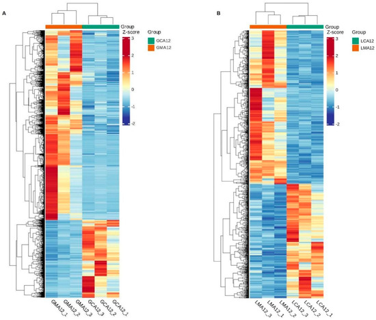 Heatmap visualization revealed pronounced segregation in transcriptional profiles, with clear separation between MS-222-treated and control groups across both gill (Figure 2A) and liver (Figure 2B) tissues, suggesting that MS-222 has a marked effect on the transcriptional levels of gill and liver tissues in largemouth bass.