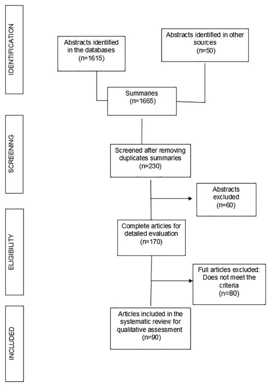 Figure 1 shows the search process across the different databases. After eliminating duplicate articles and reviewing abstracts, ninety articles were included and analyzed in this review [,,,,,,,,,,,,,,,,,,,,,,,,,,,,,,,,,,,,,,,,,,,,,,,,,,,,,,,,,,,,,,,,,,,,,,,,,,,,,,,,,,,,,,,,].