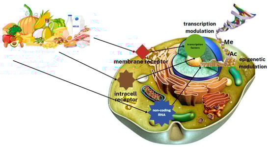 At the cellular level, some of the food components act as ligands for transcription factor receptors or enter metabolic pathways by altering the levels of intermediates and terminals, as well as modulating signal transduction pathways [3].