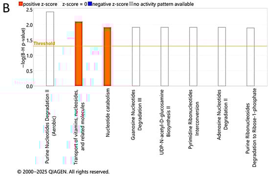 Bioinformatic analysis was caried out using metaboanalyst and Ingenuity Pathway Analysis (IPA) complementarily to ensure rigorous and biologically contextualized interpretation of our data. Metaboanalyst was used to provide statistically robust and topology-aware pathway analysis based on the KEGG database, while IPA was used to provide a more comprehensive, curated knowledge base that uses literature-derived biological networks, and deeper mechanistic insights and functional interpretations. IPA was utilized to investigate the biological functions and interactions of metabolites that exhibited differential expression between EC and control samples, as well as between HY and control samples. The software automatically links the IDs to information within our expert-reviewed Intelligence Knowledge Base, which aggregates data from all published scientific literature. By comparing the experimental data’s expression patterns to established biological networks, the software pinpoints the key activities and pathways significantly linked to the provided metabolite list.