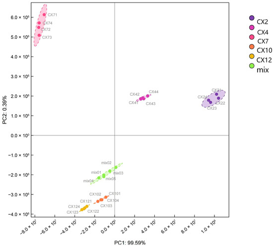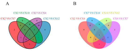 | CX4 vs. CX12 | 2 | / | caffeic acid, cinnamic acid |