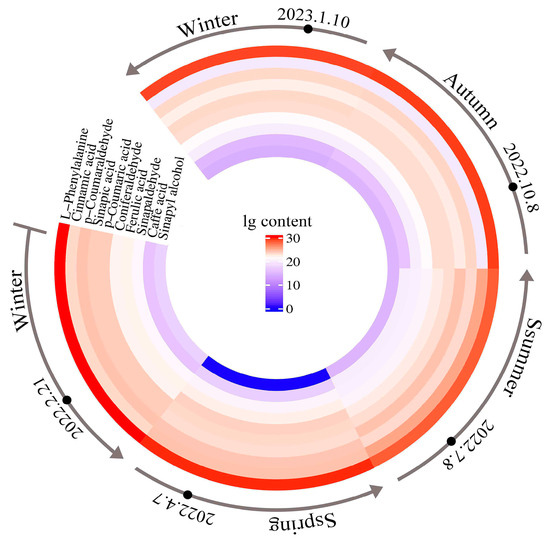 Song C, Wang Y, Sun T, Han Y, Mu Y, Ji X, Zhang S, Sun Y, Wu F, Liu T, et al. Annual Dynamic Changes in Lignin Synthesis Metabolites in Catalpa bungei ‘Jinsi’. Metabolites. 2025; 15(8):493. https://doi.org/10.3390/metabo15080493