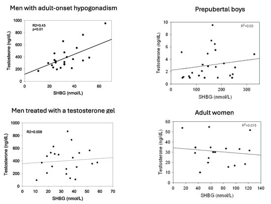 - Liao, Z.; Vosberg, D.E.; Pausova, Z.; Paus, T. A Shifting Relationship Between Sex Hormone-Binding Globulin and Total Testosterone Across Puberty in Boys. J. Clin. Endocrinol. Metab. 2022, 107, e4187–e4196. [Google Scholar] [CrossRef]