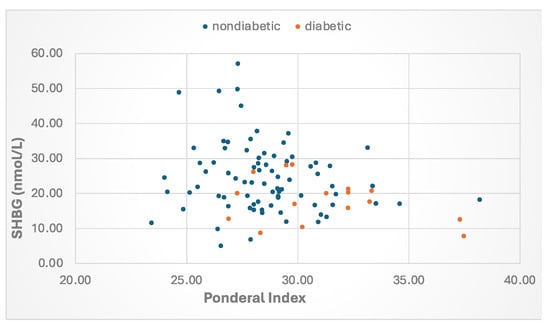Relationship between the Ponderal index and SHBG levels at age day 2 in babies born to mothers with type 2 or gestational diabetes or those without diabetes. The Ponderal Index (PI) was calculated as BW (g) × 100/[BL (cm)]3. Data from Aydin et al. [].