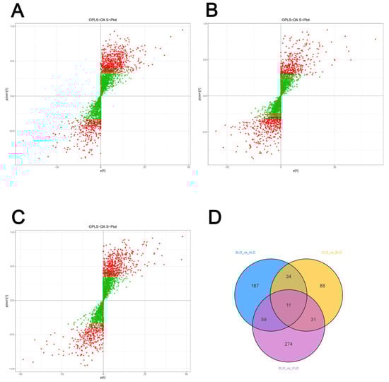 OPLS-DA S-plot plots (A–C),Wayne diagram of LD differences (D).