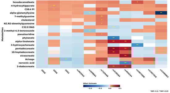 3.4. Associations of Individual Metabolites and GRS and SNPs