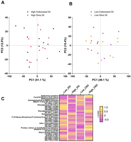 APA StyleCooper, G., Bhattarai, P., Sather, B., Bailey, M. L., Chamberlin, M., Miles, M., & Bothner, B. (2025). Dietary Intervention with Cottonseed and Olive Oil Differentially Affect the Circulating Lipidome and Immunoregulatory Compounds—A Randomized Clinical Trial. Metabolites, 15(9), 599. https://doi.org/10.3390/metabo15090599
