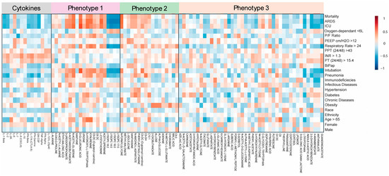 Figure 5. Correlations between cytokines, metabolites from metabolic phenotypes, and patients’ demographics, clinical data, and comorbidities.