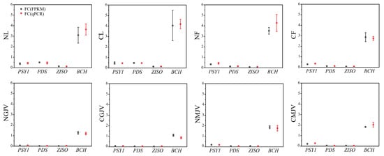 - Toledo-Ortiz, G.; Huq, E.; Rodríguez-Concepción, M. Direct Regulation of Phytoene Synthase Gene Expression and Carotenoid Biosynthesis by Phytochrome-Interacting Factors. Proc. Natl. Acad. Sci. USA 2010, 107, 11626–11631. [Google Scholar] [CrossRef] [PubMed]