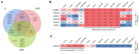 | F Expressed Genes | GJV Expressed Genes | MJV Expressed Genes | |||