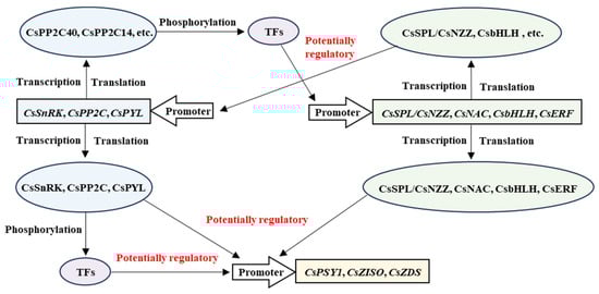 Chicago/Turabian StyleLu, Pengjun, Zhenting Shi, Tao Liu, Jianqiu Ji, Jing Li, Wentao Li, and Chongbo Sun. 2025. "SnRK-PP2C-PYL Gene Families in Citrus sinensis: Genomic Characterization and Regulatory Roles in Carotenoid Metabolism" Metabolites 15, no. 9: 610. https://doi.org/10.3390/metabo15090610