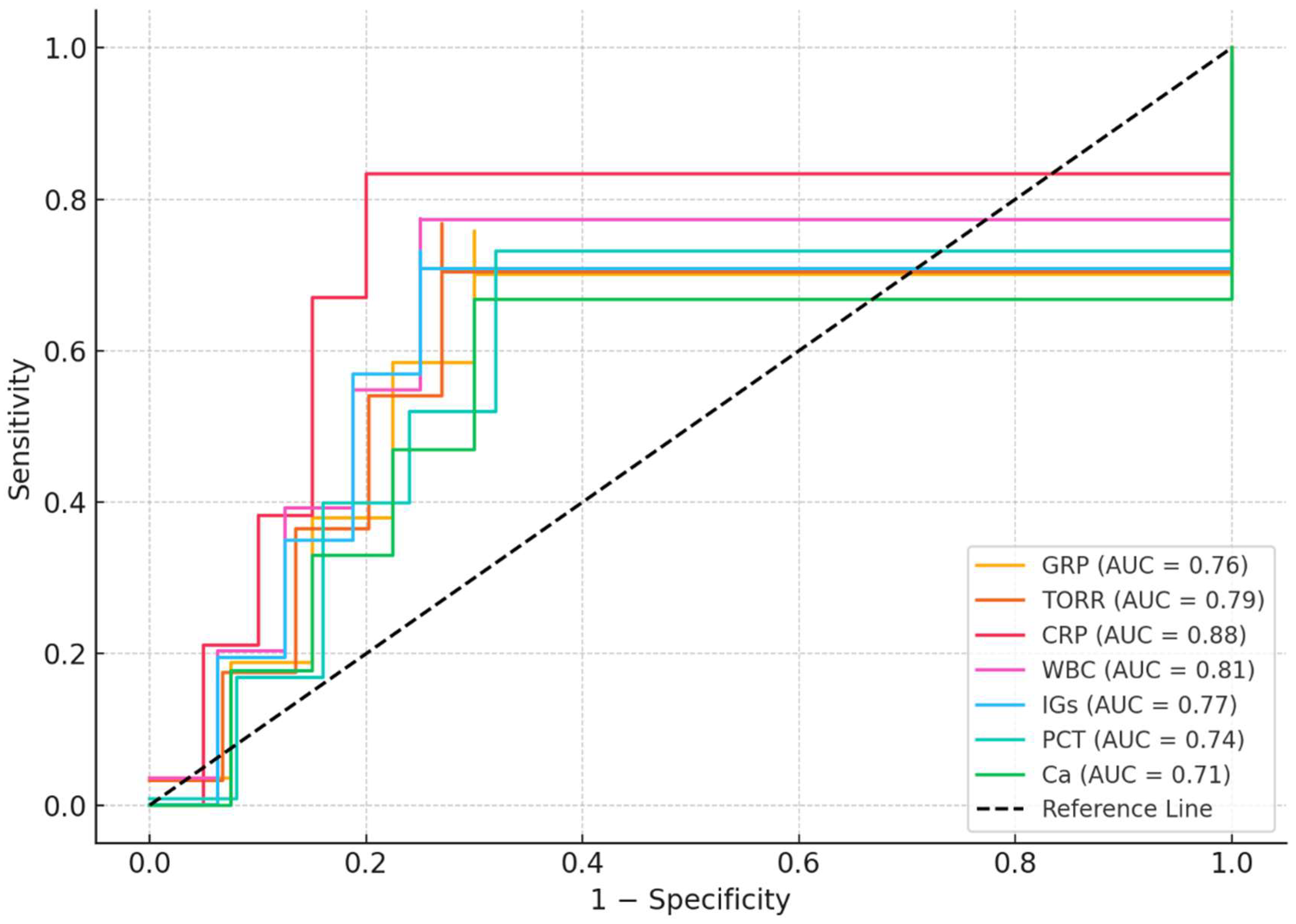 WBC (×103/µL) | 0.81 (0.73–0.89) | >11.0 | 78 | 75 | <0.001 |