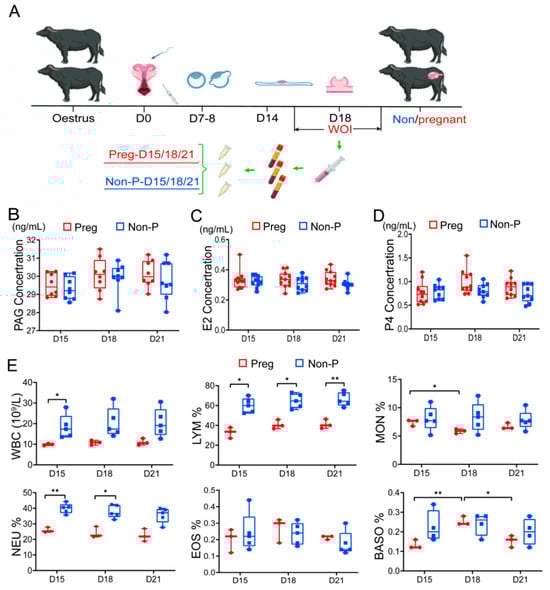 3.1. Changes in Serum Hormones and Blood Leukocytes During the Buffalo Window of Implantation (WOI)