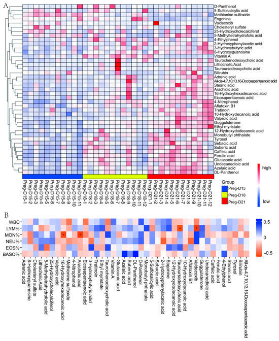 3.4. Correlation Analysis of Metabolomics and Leukocytes