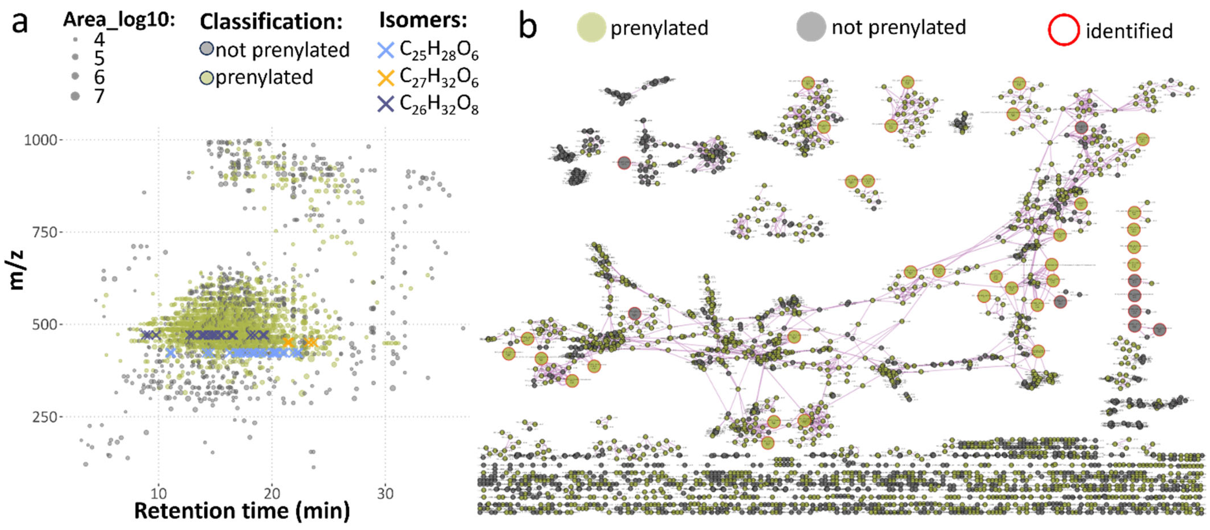 APA StyleRypar, T., Molcanova, L., Valkova, B., Hromadkova, E., Bueschl, C., Seidl, B., Smejkal, K., & Schuhmacher, R. (2025). Targeted Isolation of Prenylated Flavonoids from Paulownia tomentosa Fruit Extracts via AI-Guided Workflow Integrating LC-UV-HRMS/MS. Metabolites, 15(9), 616. https://doi.org/10.3390/metabo15090616
