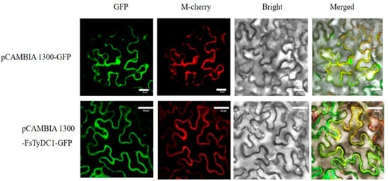 The pCAMBIA 1300-FsTyDC1-GFP recombinant plasmid, the pCAMBIA 1300-GFP empty plasmid, and the cytoplasmic marker pCAMBIA 1300-35S-UGPase-mcherry-NOS plasmid were, respectively, transformed into the Agrobacterium competent strain GV3101.