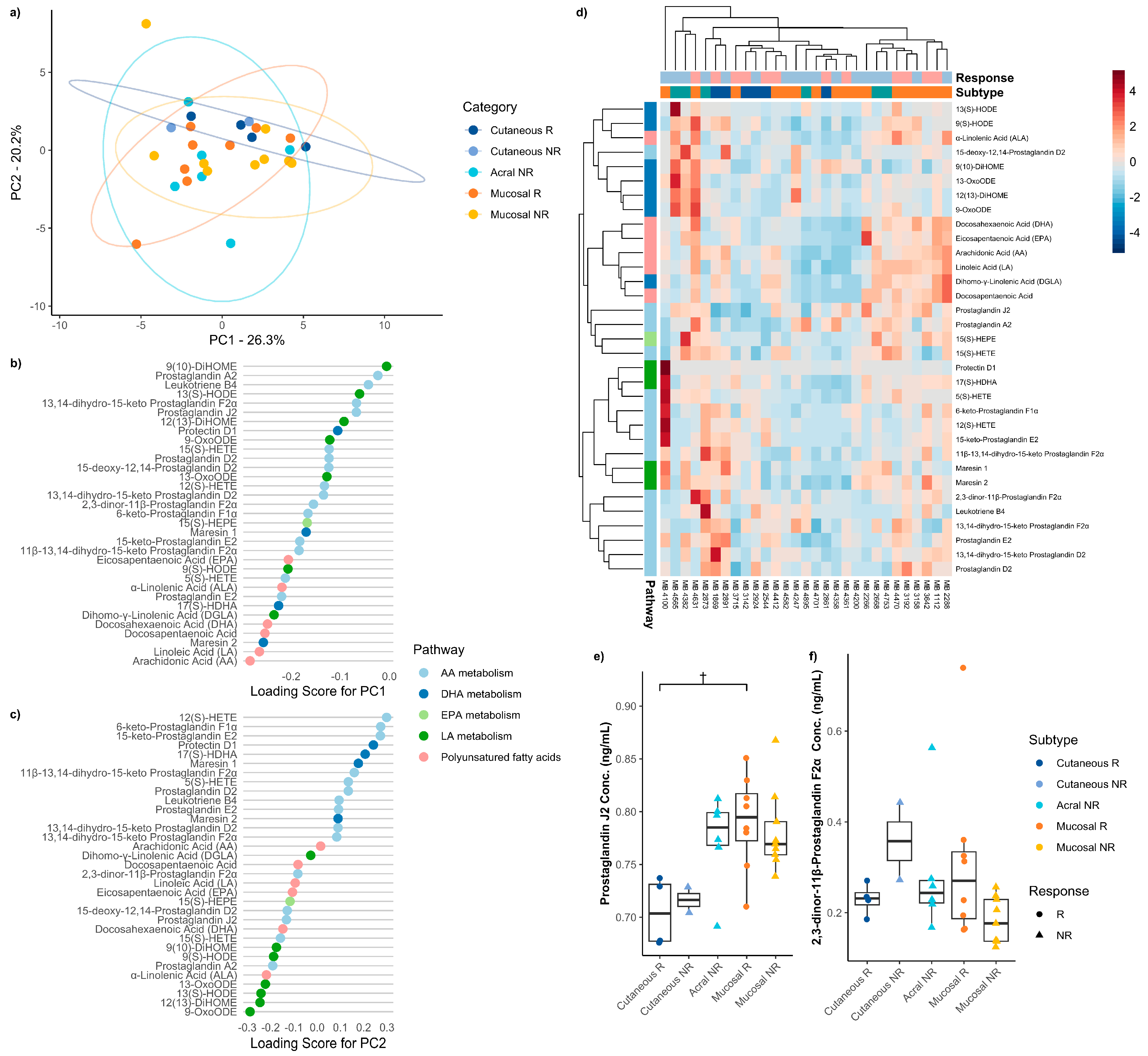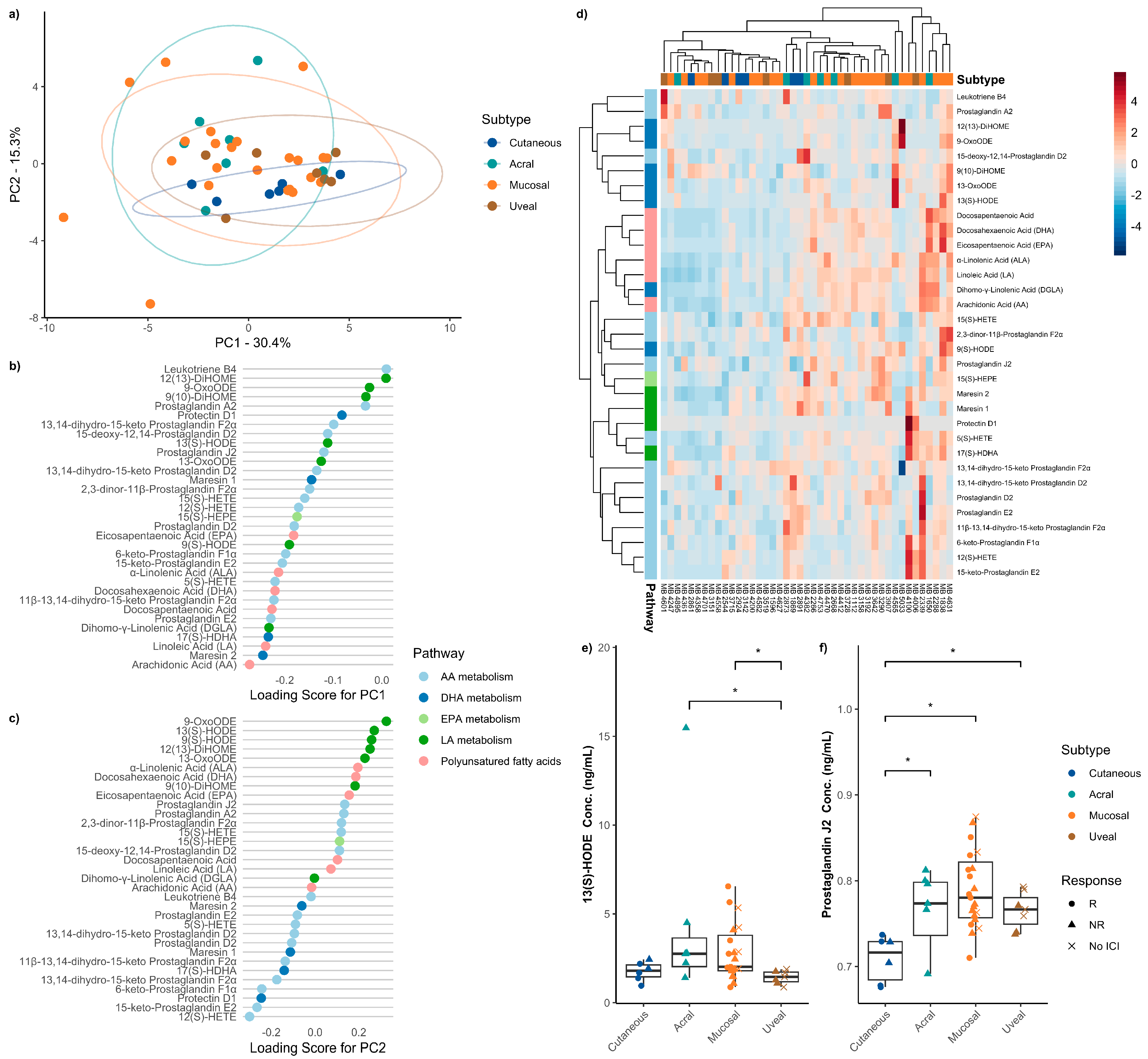 3.5. Baseline Serum Oxylipins Between Immune Checkpoint Therapy Responders and Non-Responders Across Melanoma Subtypes