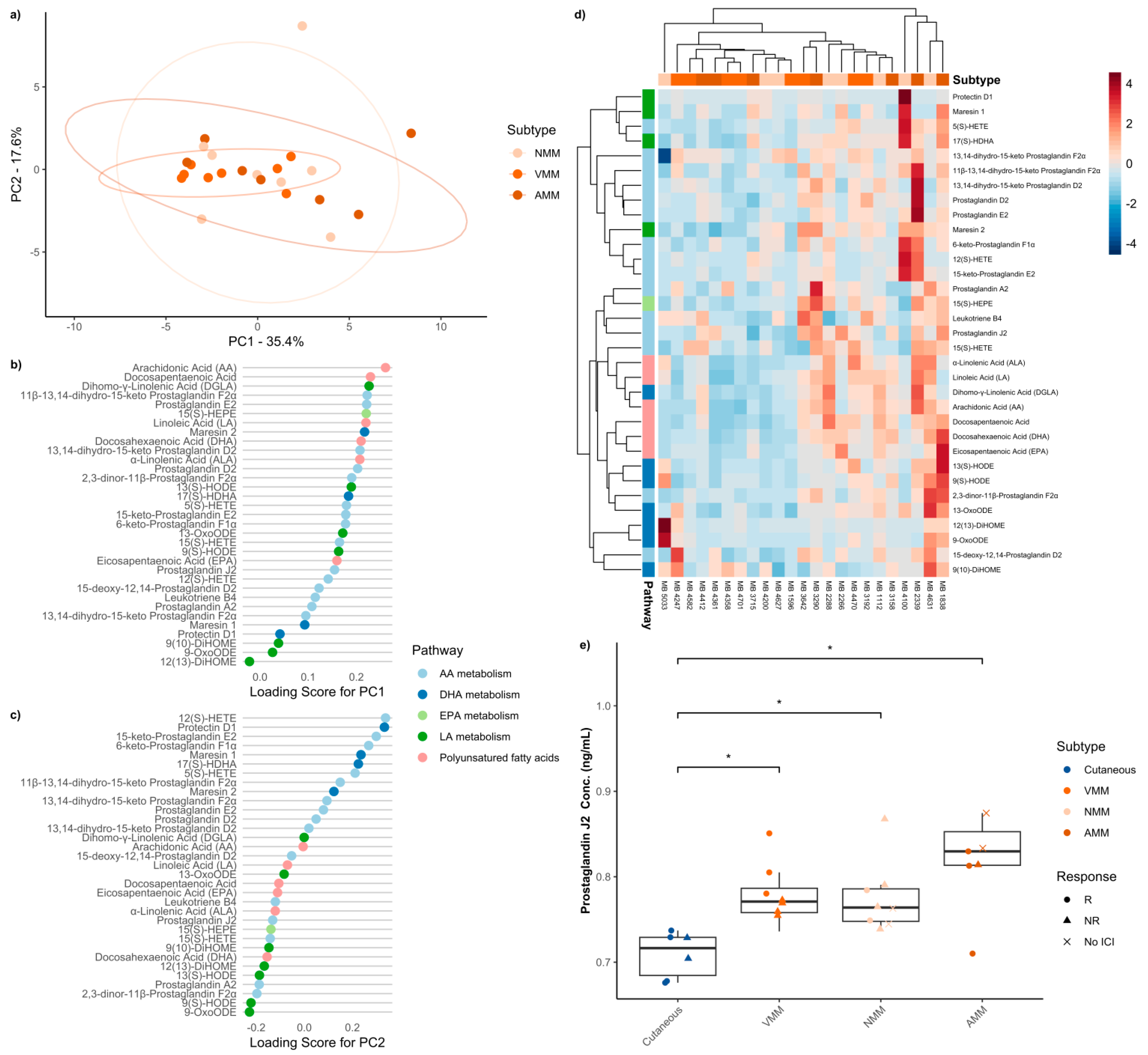 3.3. Baseline Serum Oxylipins Across Melanoma Subtypes