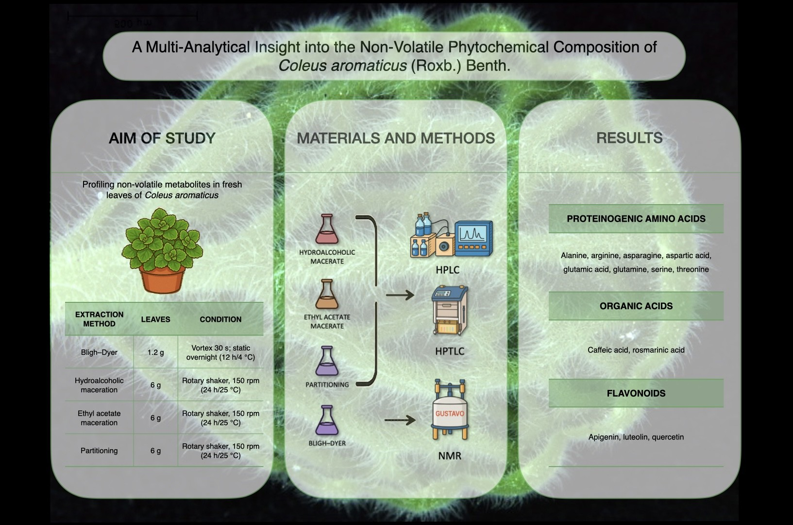 Toniolo C, Bortolami M, Patriarca A, De Vita D, Sciubba F, Santi L. Multi-Analytical Insight into the Non-Volatile Phytochemical Composition of Coleus aromaticus (Roxb.) Benth. Metabolites. 2026; 16(1):15. https://doi.org/10.3390/metabo16010015