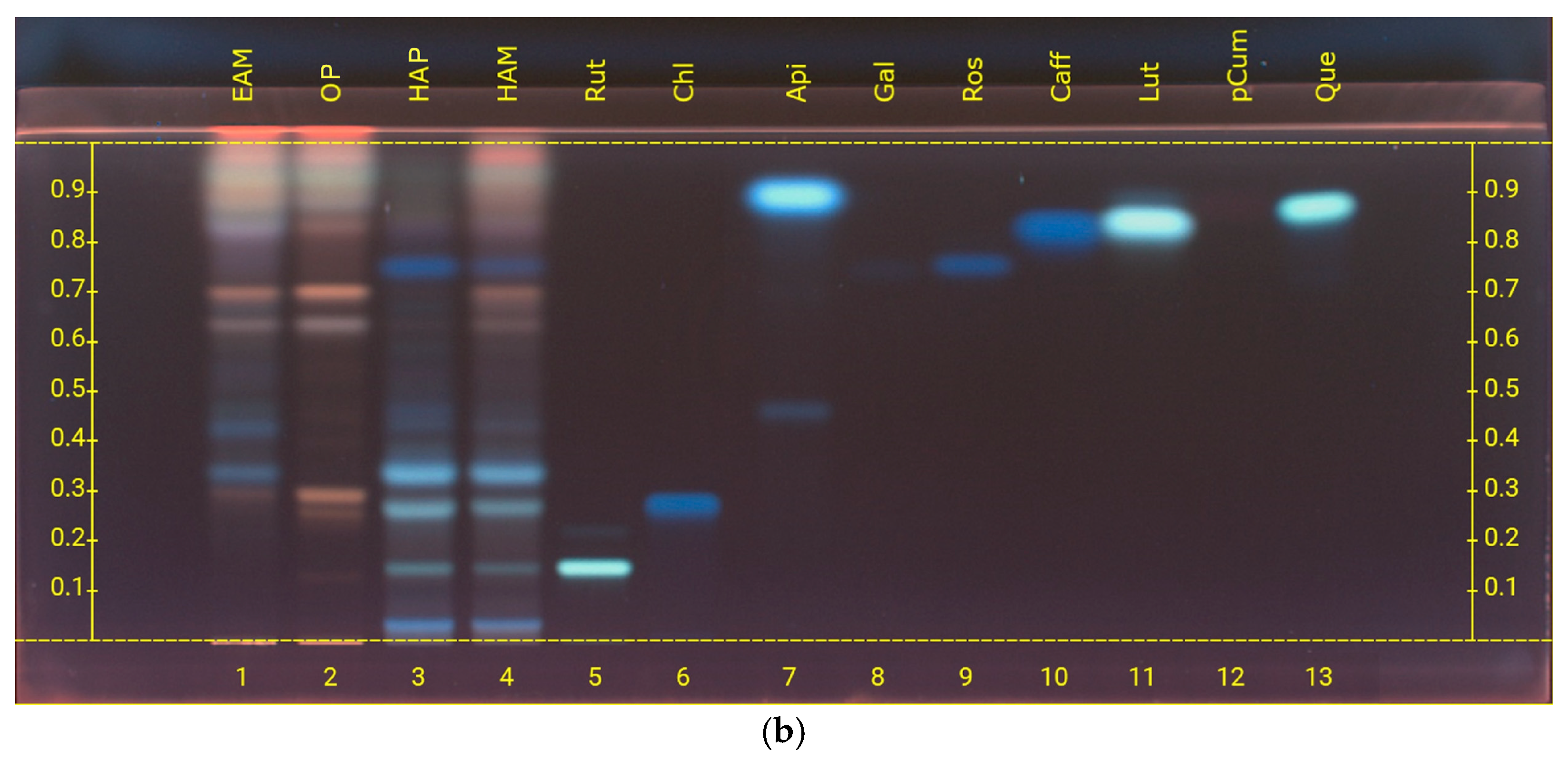 | Flavonoid | EAM | OP | HAP | HAM | Rf |