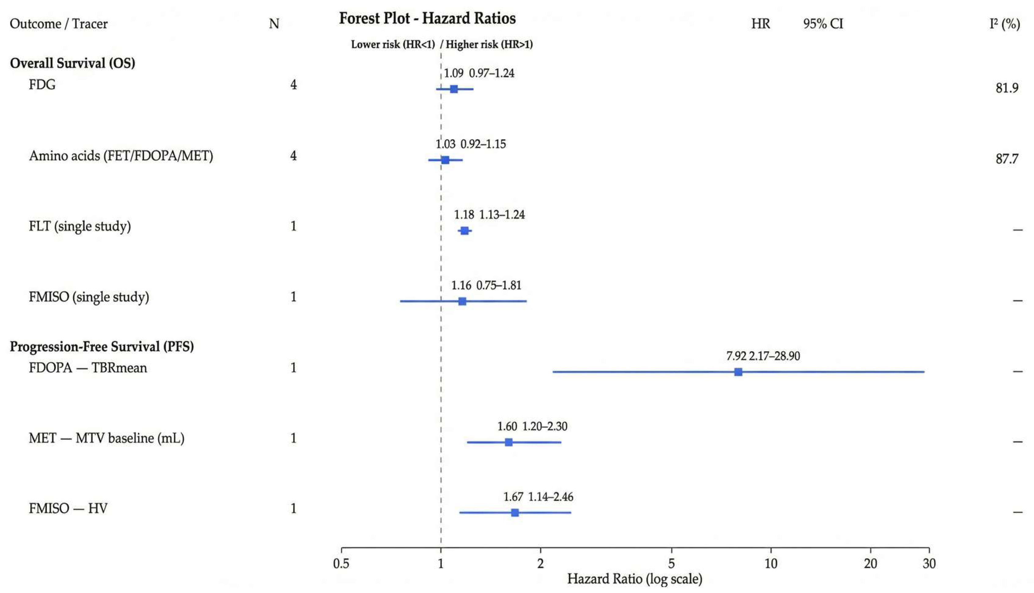 | Outcome | Tracer/Class | Studies (Years) | k | Model | HR | 95% CI | I2 (%) |