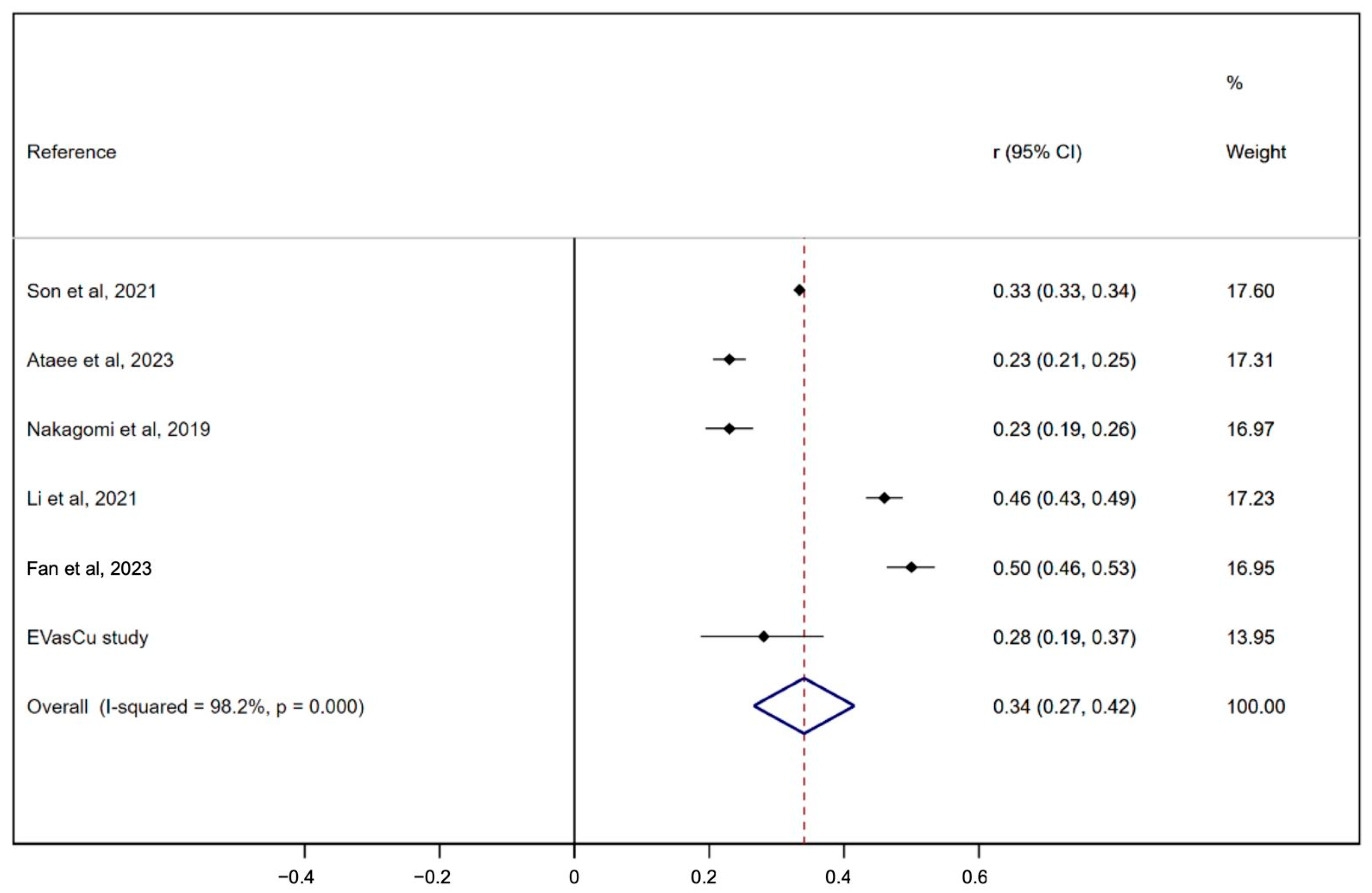 - To contextualize these findings by conducting a meta-analysis including EVasCu data and previous studies evaluating the association between the VAI and arterial stiffness (both central and peripheral) in healthy and clinical populations, formally assessing and exploring heterogeneity across studies.